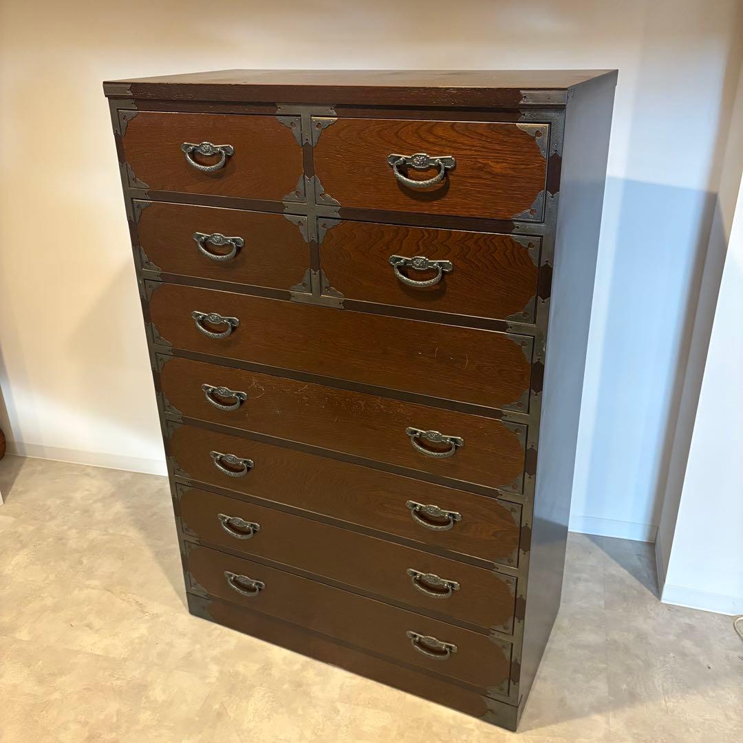 長年使い込まれたレトロな品です。引き出し内部は桐のしっかりとした作りです。クリーニング済みですが、経年の傷欠けなどあります。全体(取手含む) H 40,5cm×W 27cm×D 33,5cm全体(取手含まず) H 40,5cm×W 27cm×D 33cm引き出し(内寸) H 5,5cm×W 23,5cm×D 29,5cm×1杯 H 7cm×W 23,5cm×D 29,5cm×1杯 H 8,5cm×W 23,5cm×D 29,5cm×1杯 H 11cm×W 23,5cm×D 29,5cm×1杯多少の誤差はご了承ください。 9/18 ⑥